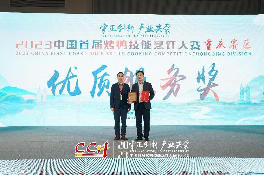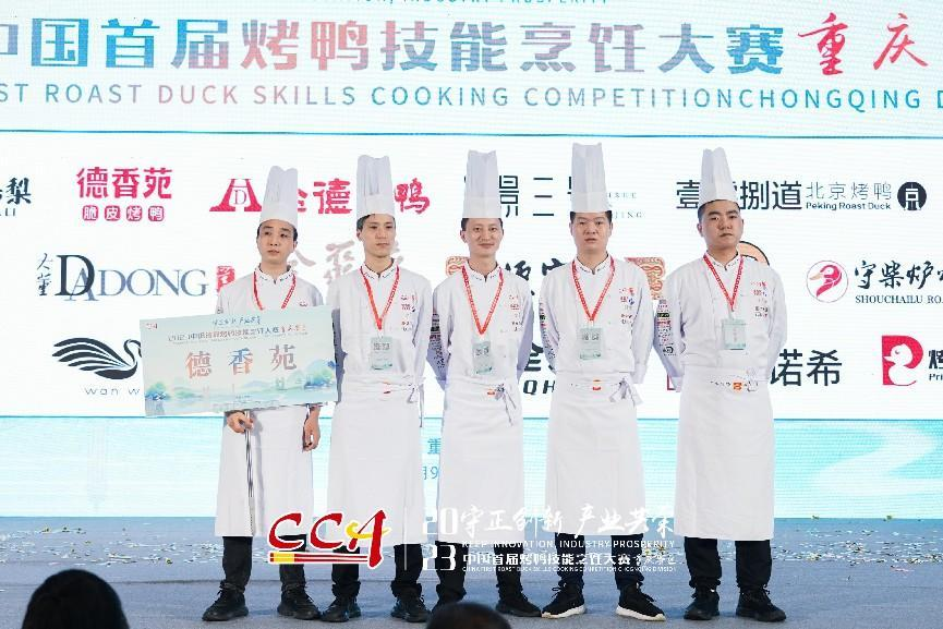 2023中國首屆烤鴨技能烹飪大賽(重慶賽區(qū))由中國烹飪協(xié)會(huì)主辦,中國烹飪協(xié)會(huì)烤鴨專業(yè)委員會(huì)承辦,以“守正創(chuàng)新、產(chǎn)業(yè)共榮”為主題,得到國內(nèi)頭部烤鴨品牌及產(chǎn)業(yè)鏈上下游企業(yè)的大力支持,是連接烤鴨產(chǎn)業(yè)上下游促進(jìn)產(chǎn)業(yè)交流的一次盛會(huì);本次大賽受到全國特別是重慶市餐飲人的關(guān)注。德香苑作為重慶本土烤鴨品牌,不僅派出金牌廚師團(tuán)隊(duì)參賽,還充分體現(xiàn)出重慶的熱情耿直特質(zhì),從各門店抽調(diào)優(yōu)質(zhì)服務(wù)人員組成大賽服務(wù)團(tuán)隊(duì)主動(dòng)承擔(dān)起大賽的一系列服務(wù)工作。